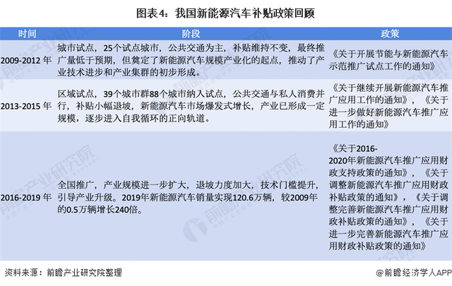 中国新能源汽车产业化始于 2009 年的“十城千辆”工程,通过提供财政补贴,先公共交通、后私人消费,从城市试点、区域试点再到全国范围推广的步骤稳步推进。通过使用财政补贴撬动社会资本,驱动产业快速发展,压缩行业导入期;同时逐步降低补贴金额,提升补贴门槛,标准持续细化,引导技术进步,产业升级,并形成具备全球竞争优势的产业集群。补贴政策根据产业发展调整经历过以下三个阶段: